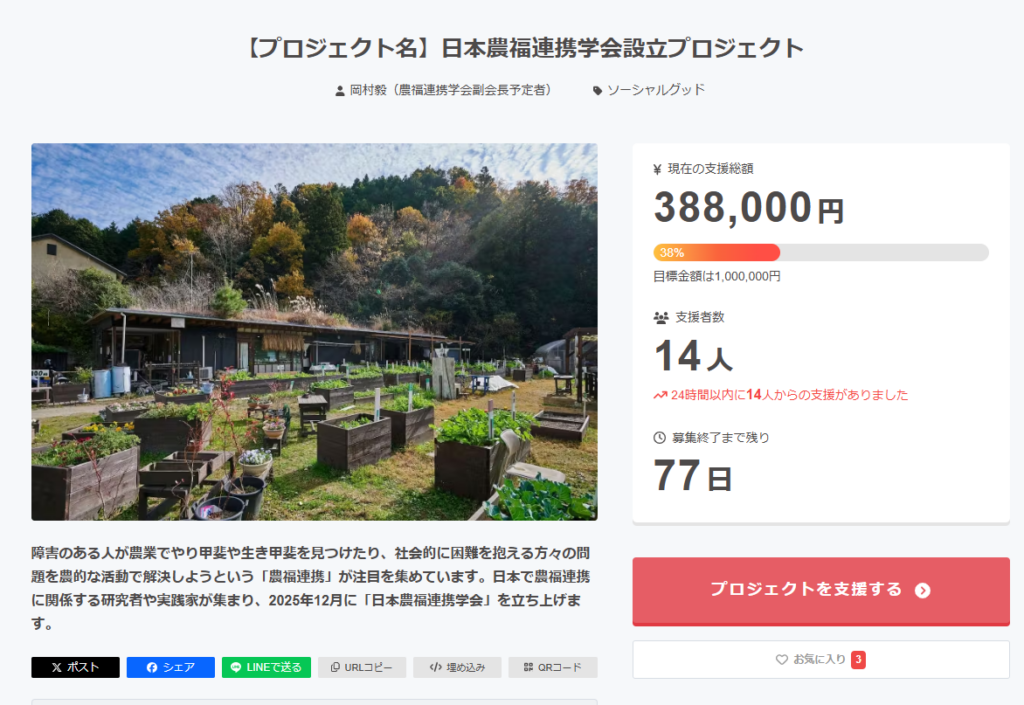 この学会設立運営に必要な初期費用を捻出するために、クラウドファンディングをはじめています。ご賛同頂けるようでございましたら、どうかご協力のほどお願い申し上げます。